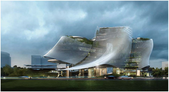 近日,富煌鋼構中標由中國著名設計師馬巖松先生設計的具有世界頂級建筑地標之稱的欣賀公司新總部辦公大樓項目。該項目位于廈門市高新技術園安里路北側,殘新路以東。分地下兩層,地上九層。項目建筑形式非常特殊,結構極其復雜。