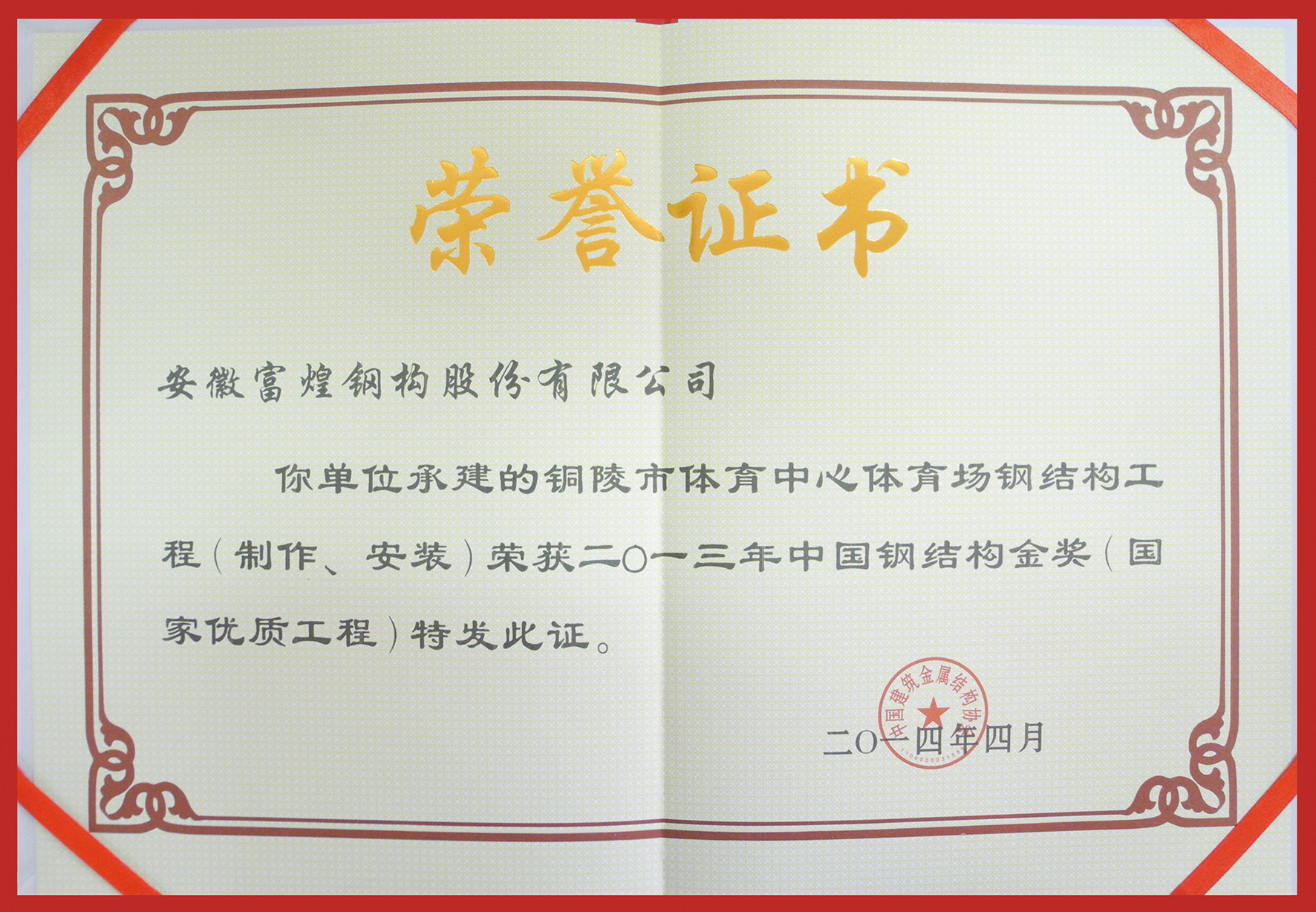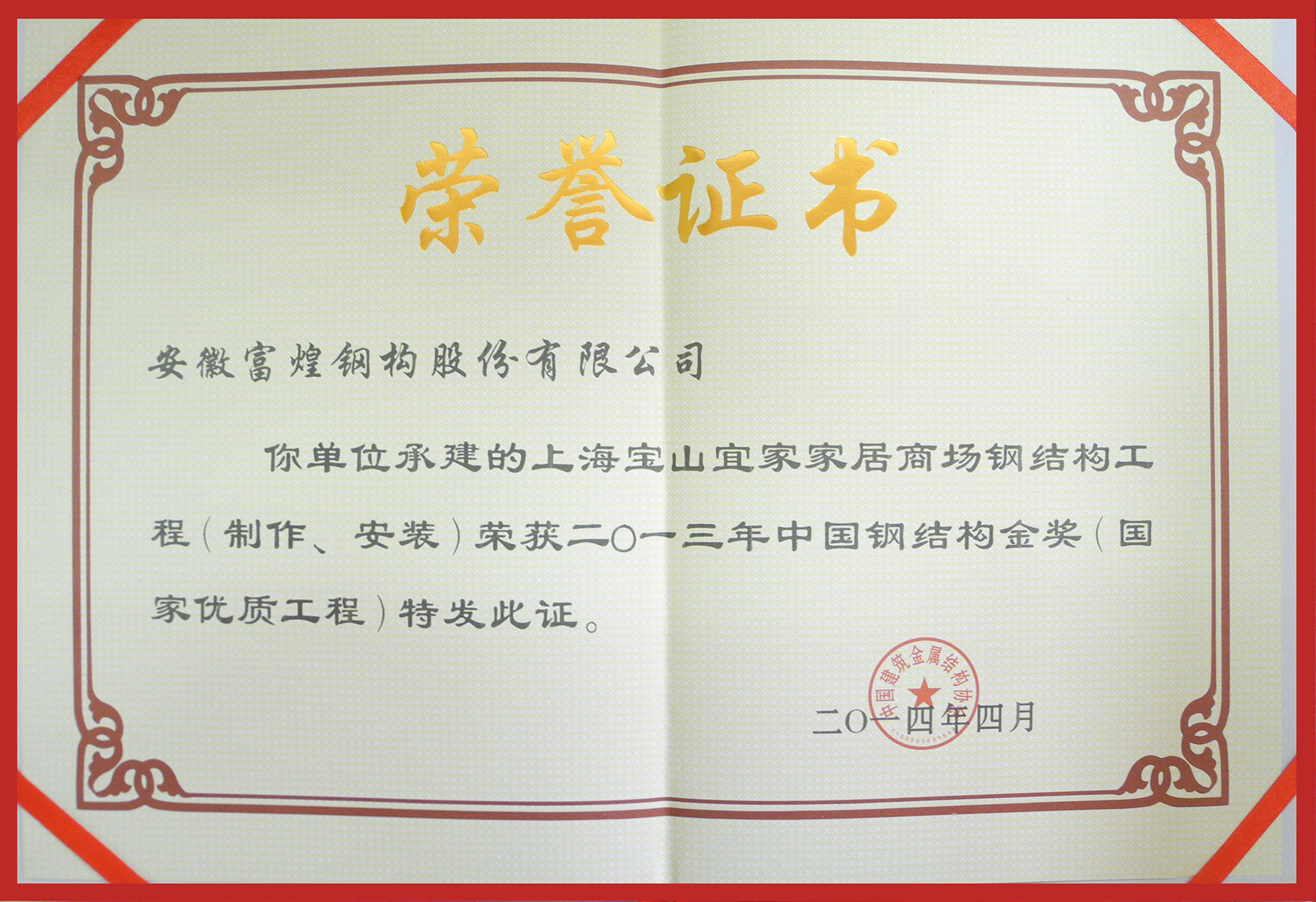 此次盛會(huì),富煌鋼構(gòu)亦是載譽(yù)而歸,榮獲“2014-2016年建筑鋼結(jié)構(gòu)行業(yè)推薦品牌(信譽(yù)AAA)企業(yè)”,承建的上海寶山宜家家居商場(chǎng)鋼結(jié)構(gòu)工程(制作、安裝)、銅陵市體育中心體育場(chǎng)鋼結(jié)構(gòu)工程(制作、安裝)榮獲“中國(guó)鋼結(jié)構(gòu)金獎(jiǎng)”,楊俊斌被推選為“2013年度全國(guó)鋼結(jié)構(gòu)行業(yè)優(yōu)秀企業(yè)家”,張秉文、黃俊、林海軍三人榮獲“2013年度中國(guó)鋼結(jié)構(gòu)工程優(yōu)秀建造師”。