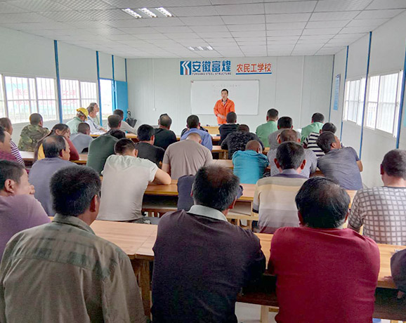 作為安徽省首個大型裝配式鋼結(jié)構(gòu)綜合院校類工程、阜陽市重點建設(shè)項目,阜陽職業(yè)技術(shù)學(xué)院新校區(qū)工程自承建以來便受到各界的廣泛關(guān)注。結(jié)合EPC工程項目總承包模式的特點和裝配式建筑項目的特點和難度,公司依托自身的裝配式建筑核心技術(shù)與優(yōu)勢,整合資源、創(chuàng)新管理、調(diào)整戰(zhàn)略,制定了原材料及施工檢驗制、樣板引路制、質(zhì)量檢測驗收制、成品保護制、實測印章上墻制等各項管理制度,并通過實行細化管理制度將責(zé)任落實到人,確保工程的順利進行。