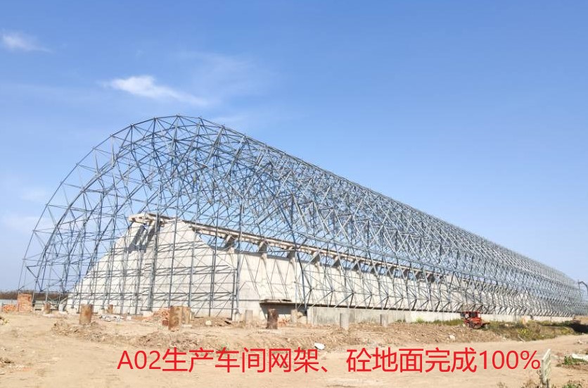 A02.01生產(chǎn)車間網(wǎng)架主體完成、砼地面完成100%;