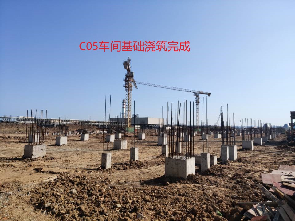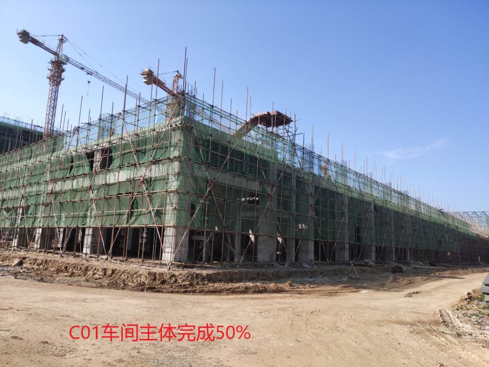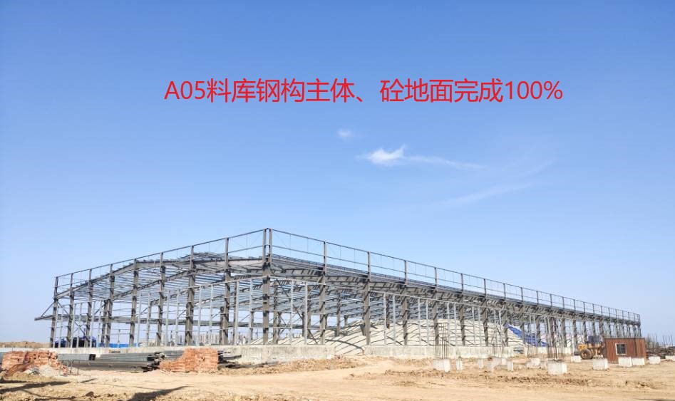 A05產(chǎn)品庫房鋼構(gòu)主體、地面砼完成100%;