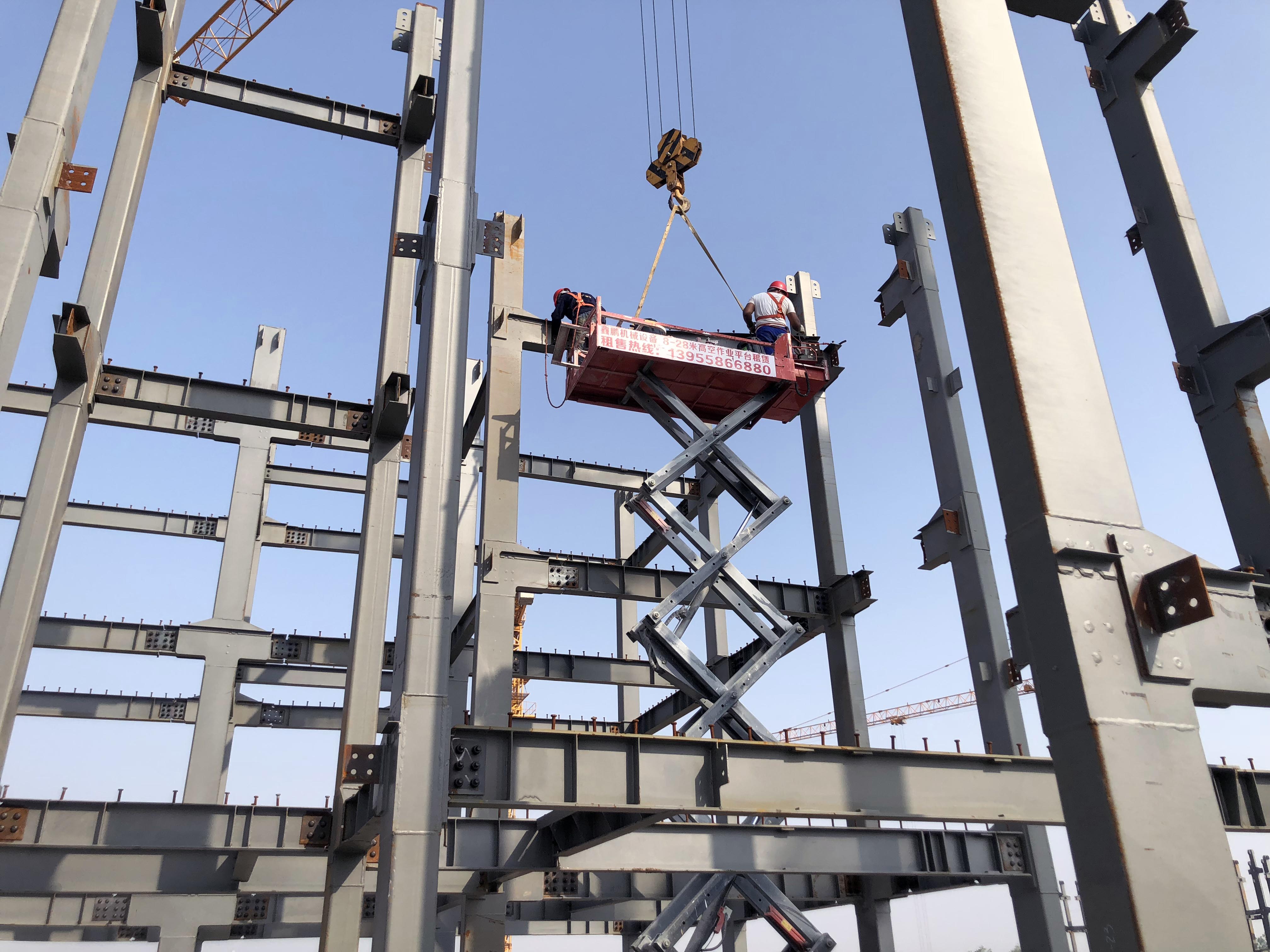 一、鋼梁安裝采用剪叉式高空作業(yè)平臺(tái)車