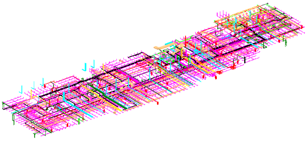傳統(tǒng)的施工方法是使用二維軟件(如CAD)繪制機(jī)電綜合圖紙,并輔以局部的剖面圖的方式來解決機(jī)電管線綜合的問題。由于傳統(tǒng)的管線綜合存在先天的局限性,不能完全保證其管線布局的合理性。采用BIM技術(shù),可以大幅度提高管線綜合的效率,將施工的土建和機(jī)電設(shè)備管線進(jìn)行三維精細(xì)化建模,并采用BIM技術(shù)中具有可視化模型及碰撞檢測功能,對現(xiàn)有信息模型進(jìn)行碰撞檢查,可直觀地發(fā)現(xiàn)管線綜合中的問題,及時(shí)調(diào)整,從而減少了施工中不必要的返工,提高了機(jī)電安裝的成功率。