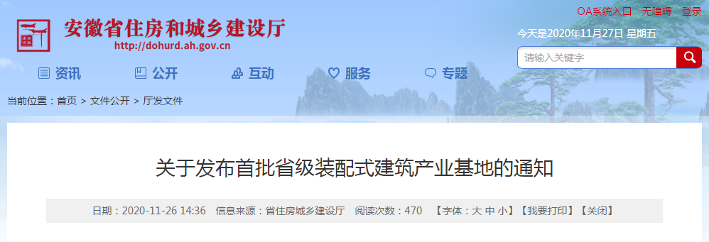 11月26日,安徽省住房和城鄉(xiāng)建設(shè)廳公布了關(guān)于發(fā)布首批省級(jí)裝配式建筑產(chǎn)業(yè)基地的通知,安徽富煌鋼構(gòu)股份有限公司成功入選,此番榮譽(yù)的獲得將會(huì)積極推進(jìn)富煌裝配式建筑全產(chǎn)業(yè)鏈的快速發(fā)展。