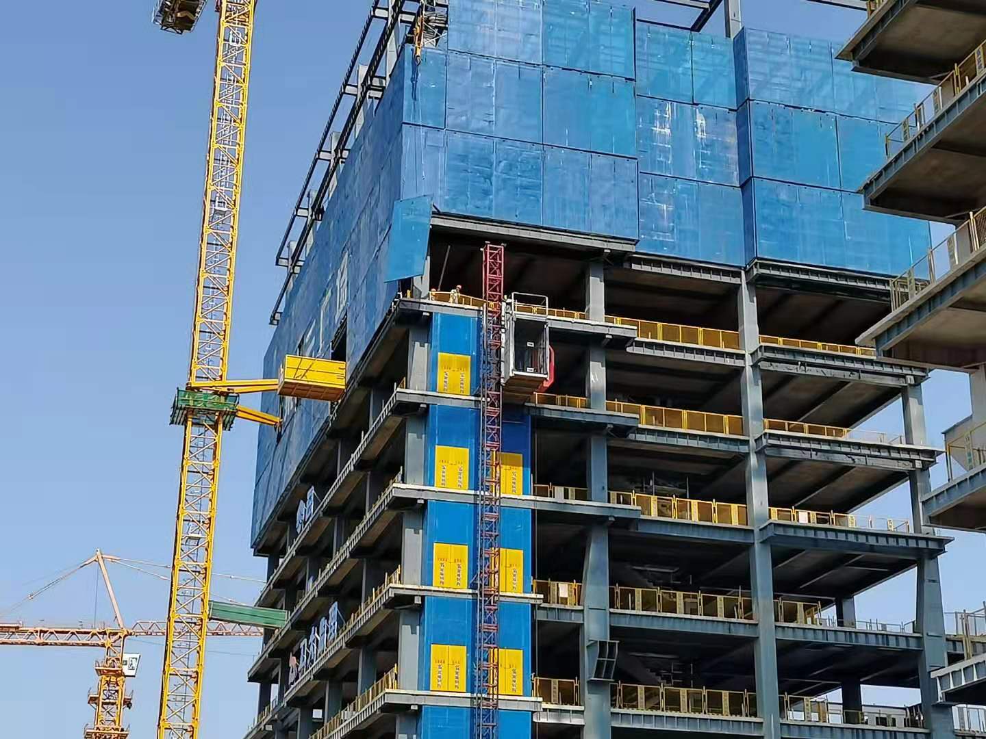 外防護架架體由鋼板網(wǎng)、方鋼管及角碼通過自攻釘連接固定。架體通過“上夾下拉”的方式同結構拉結固定,方管卡具用螺栓固定在鋼梁下部翼緣板上,下部通過焊接在架體上的拉結鋼管與下層鋼梁上預先焊接的短鋼管用扣件連接緊固,形成全封閉的防護體系。外掛式防護架技術研究及工程實踐提供了一種裝配式鋼結構建筑施工外防護措施,總結了裝配式鋼結構外掛式防護架的施工工藝,積累了施工經(jīng)驗,得到甲方及監(jiān)理、設計單位的認可,為企業(yè)的持續(xù)發(fā)展提供了保障,為今后類似工程施工提供了經(jīng)驗。對類似項目的施工外防護施工具有一定的參考意義。除了客觀的經(jīng)濟效益和縮短工期外,還提高了工人的技術水平和施工素質,提高了管理人員的管理水平,總結了寶貴的施工經(jīng)驗和管理經(jīng)驗,同時本施工技術充分的體現(xiàn)了綠色施工、節(jié)能環(huán)保的理念。